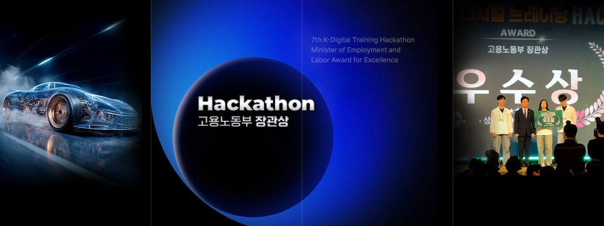 고용노동부 주최 'K-디지털 트레이닝 해커톤' 우수상 수상, 문화체육관광부 주최 문화다양성 AI 영상 콘텐츠 공모전 대상 수상! 수상을 이루어낸 수강생 여러분을 진심으로 축하드립니다!