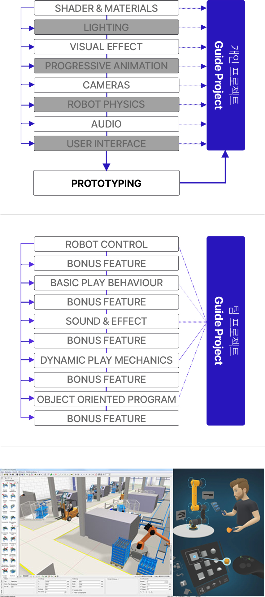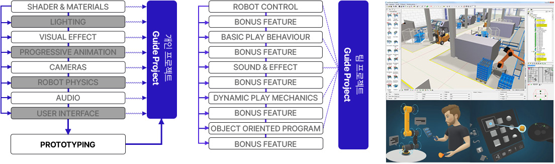 5명의 프로젝트 팀을 구성 참여기업과 협업하여 진행- 공통 주제 Virtual Factory Environment 구축
